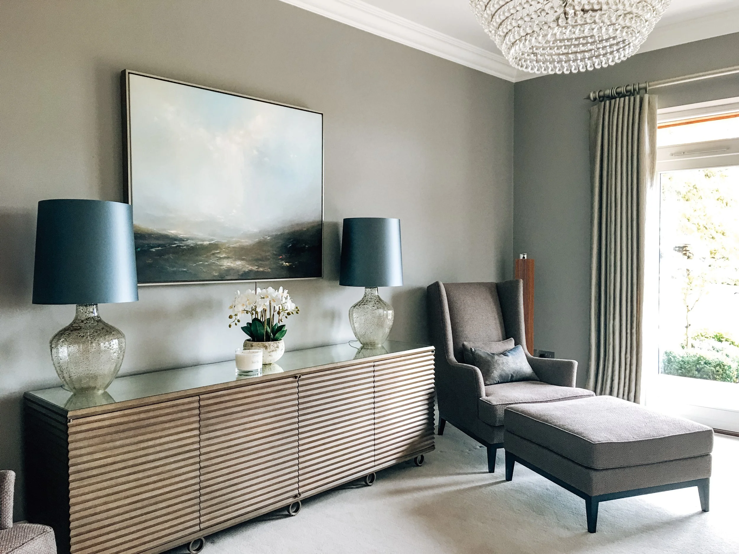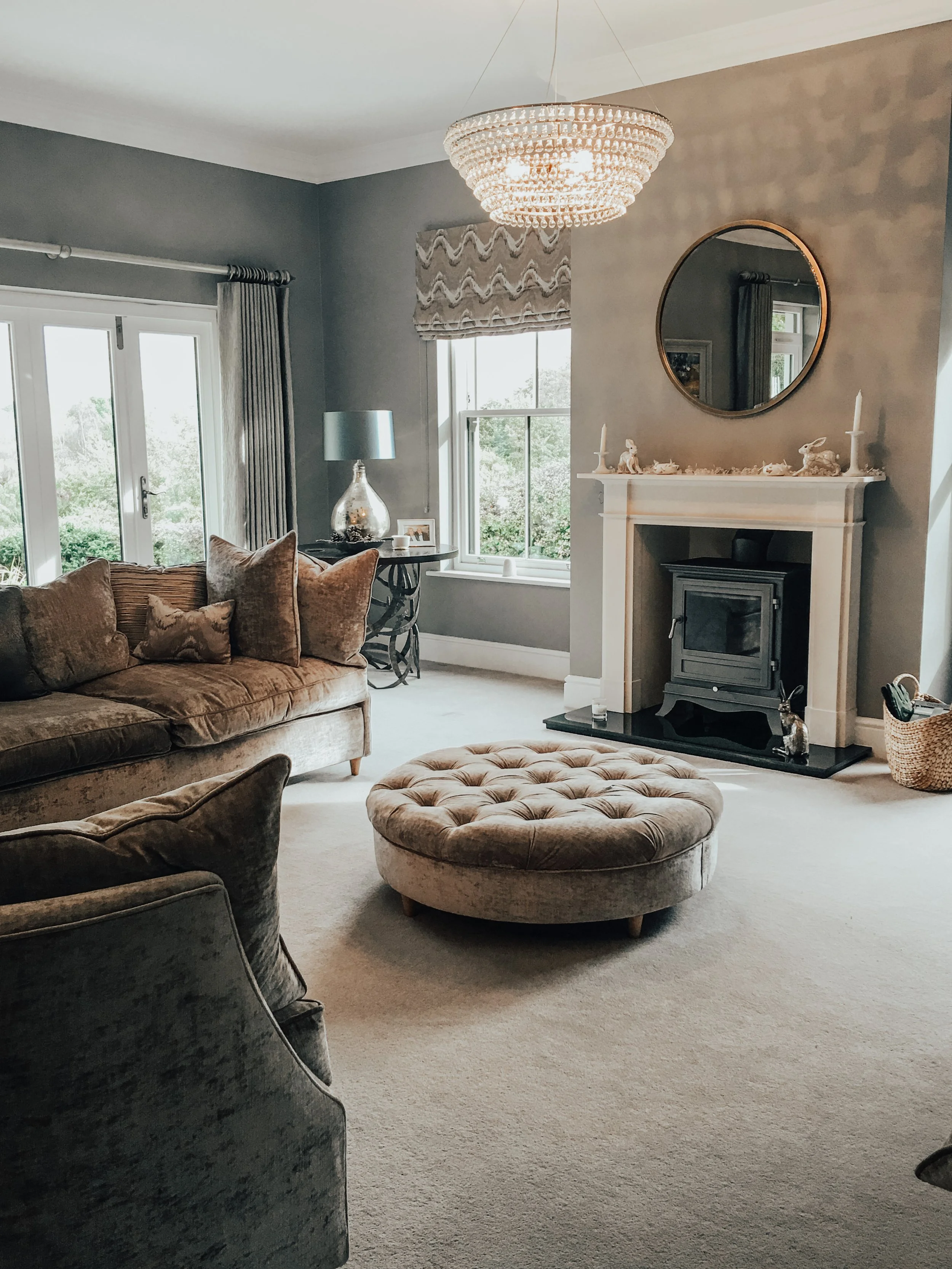 These clients came to us as they were completing the build stage of their six-bedroom new home in Quarndon, Derbyshire. Initially, we created a colour palette that flows throughout the house and then layered it up with fabrics in soft hues and a slight sheen to add glamour. Using statement lighting, unique items of furniture including bespoke sofas and chairs in luxurious fabrics, along with carefully selected artworks, we created a stylish, contemporary and family-friendly home.